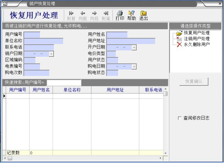 鼠標左鍵:,鼠標左鍵“銷戶恢復處理”,出現(xiàn)以下對話框: